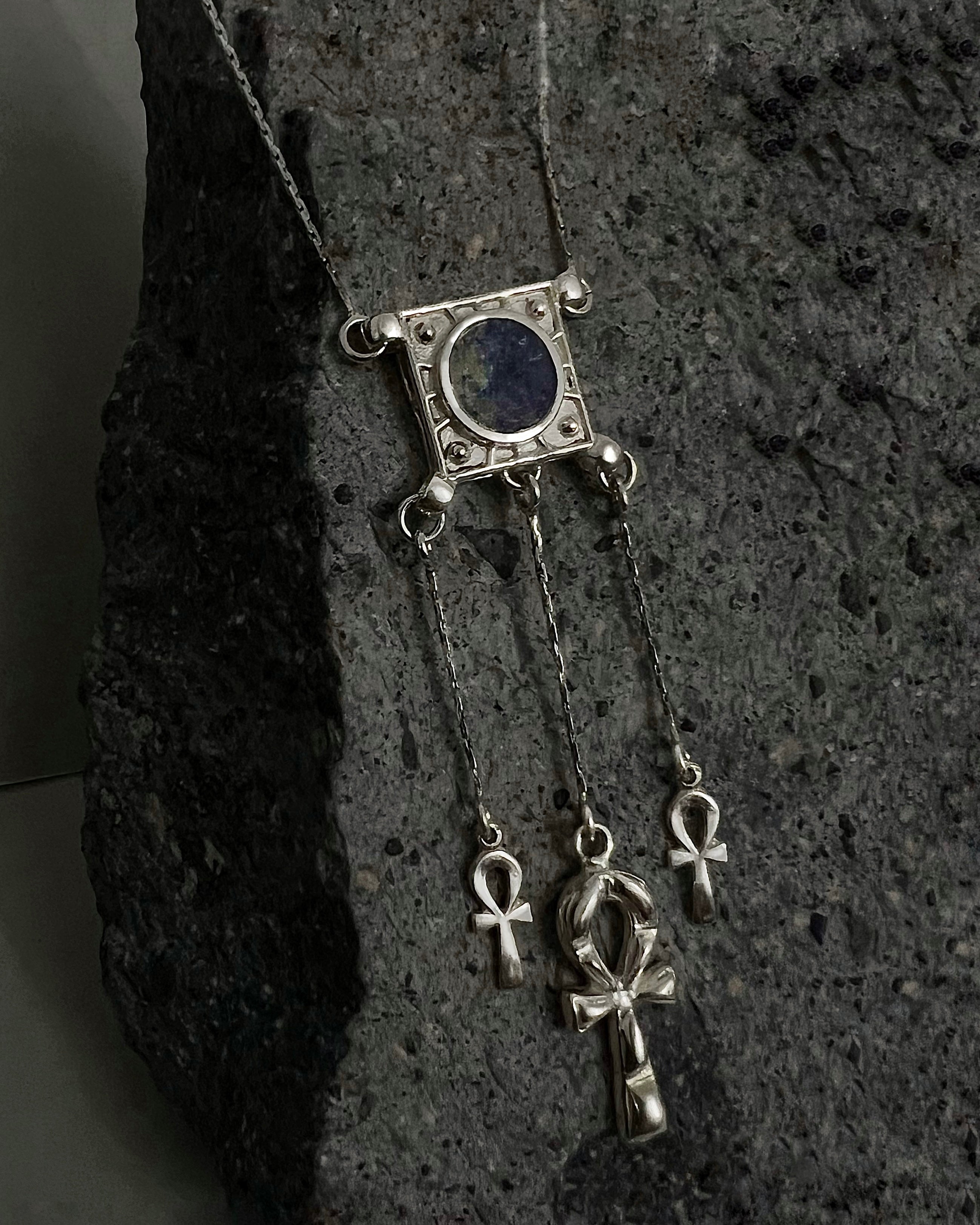 Handcrafted 925k sterling silver with genuine Lapis lazuli royal bygone necklace.